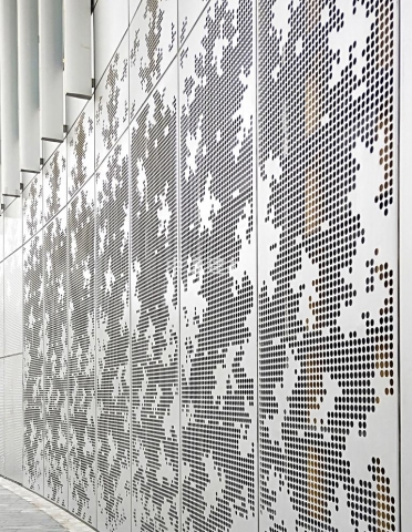 外墻裝飾網(wǎng)采用的是鋁合金板或鋁板為底材,通過(guò)模具加工沖壓加工而成,表面處理為陽(yáng)極氧化或經(jīng)典粉末噴涂處理加工,菱形沖孔網(wǎng)是奧迪4s店指定外墻板產(chǎn)品,而奧迪4s店指定鋁單板的要求板材厚度為2.0mm,孔型規(guī)格為25*60mm蜂窩孔(也稱六角孔,菱形孔)而它的標(biāo)準(zhǔn)外型尺寸是525*2000mm,630*2400mm梯形穿孔鋁板,特殊尺寸會(huì)根據(jù)展廳的需求進(jìn)行定制。